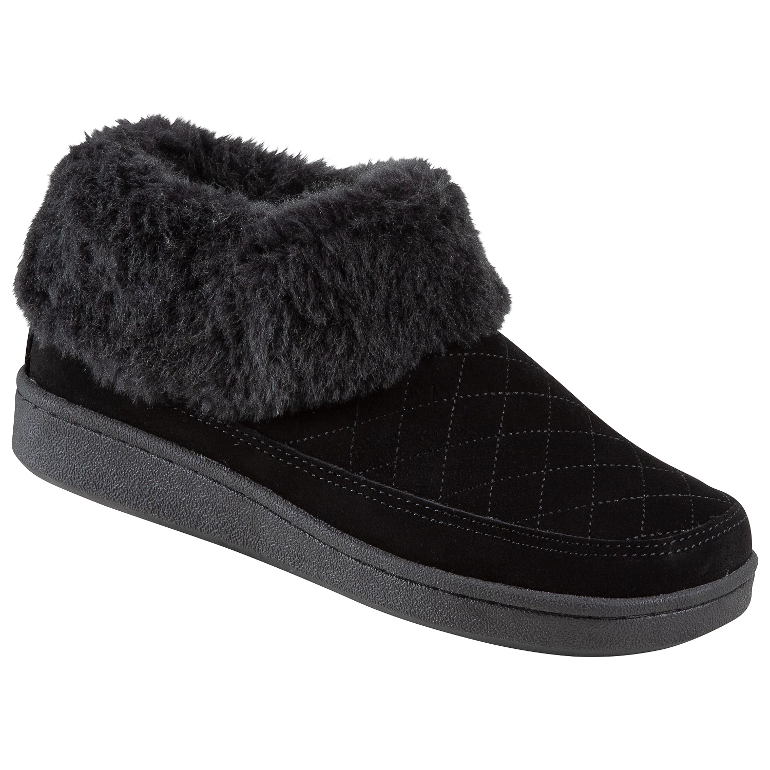 Women’s quilted suede bootie slipper with fold over faux fur collar. The super-cozy Anna from Clark’s offers a stylish alternative to plain old house-slippers.