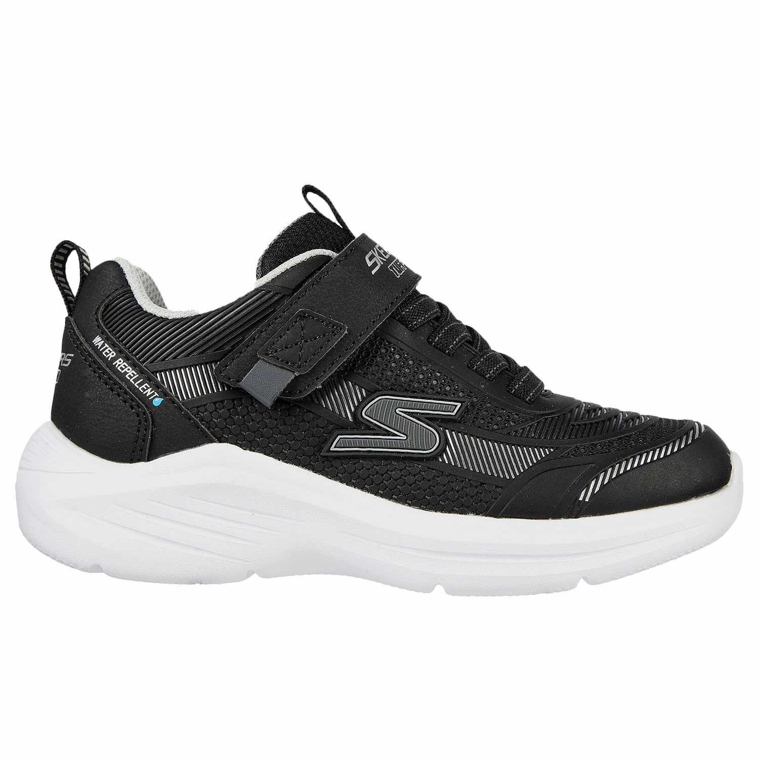 Step out with lightweight comfort for all-weather days in the Skechers Hyper-Blitz – Hydro-Tronix. This slip-on features a water-repellent Tuff Tech synthetic upper with stretch laces and a shock-absorbing midsole.