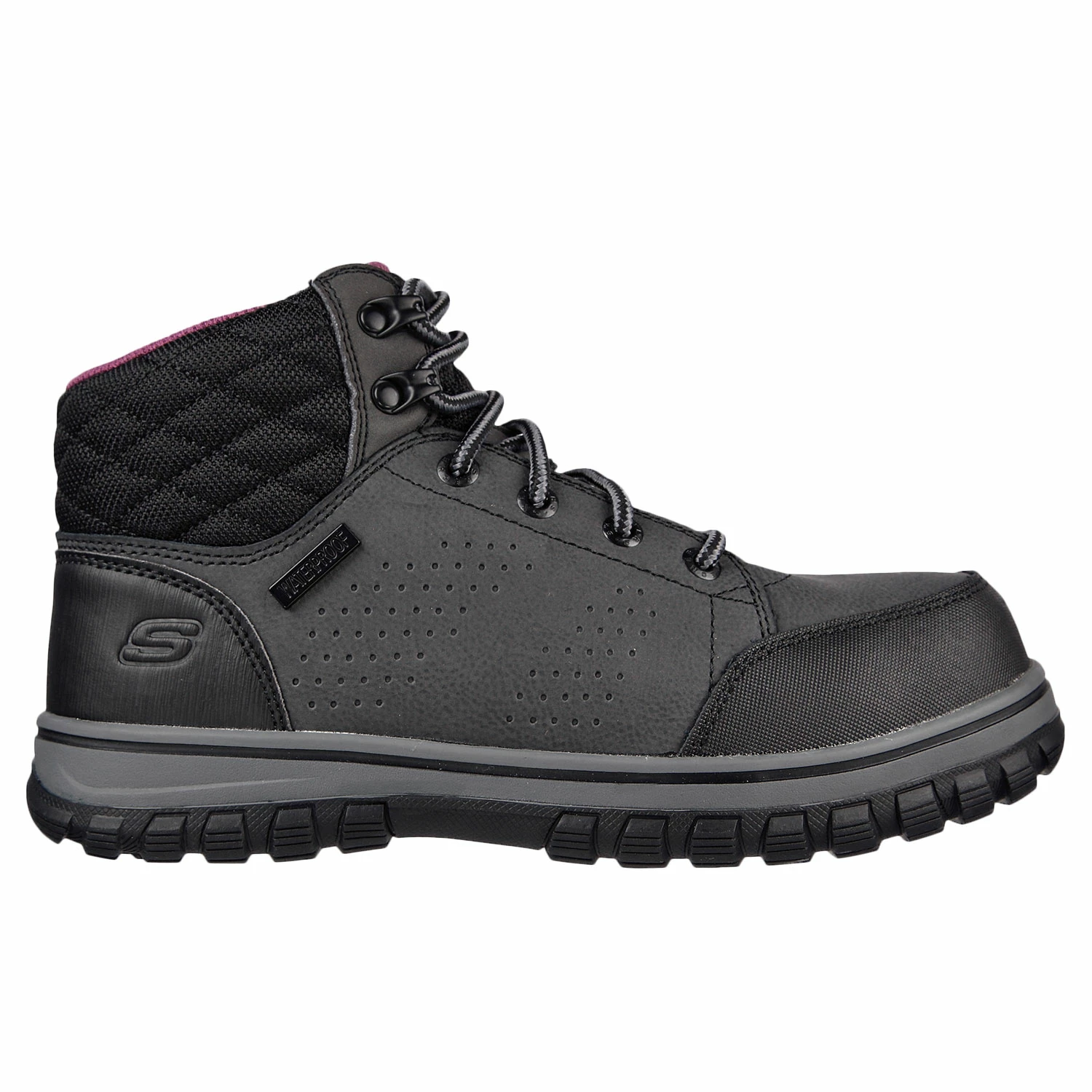 Stay protected and comfortable all day wearing Skechers Work: McColl. These lace-up ankle boots feature a waterproof leather, synthetic and durable fabric upper with a composite safety toe and cushioned Memory Foam insole.